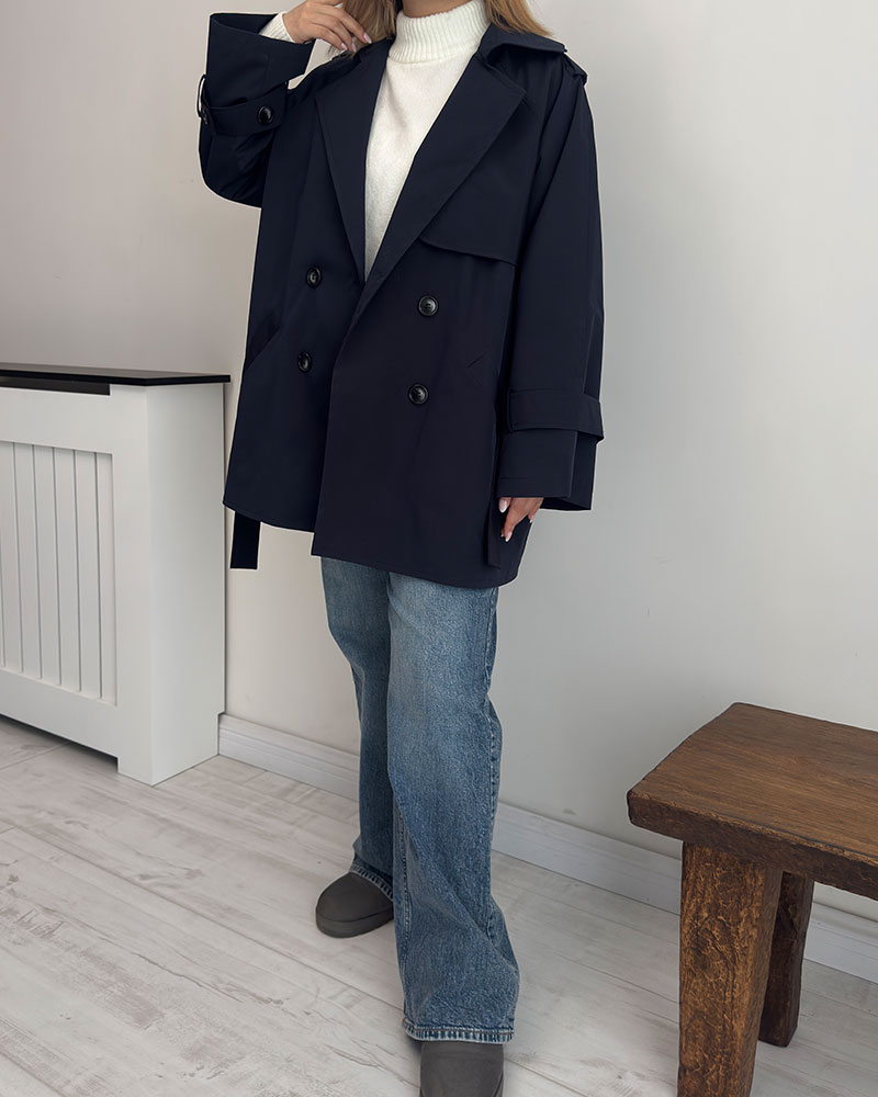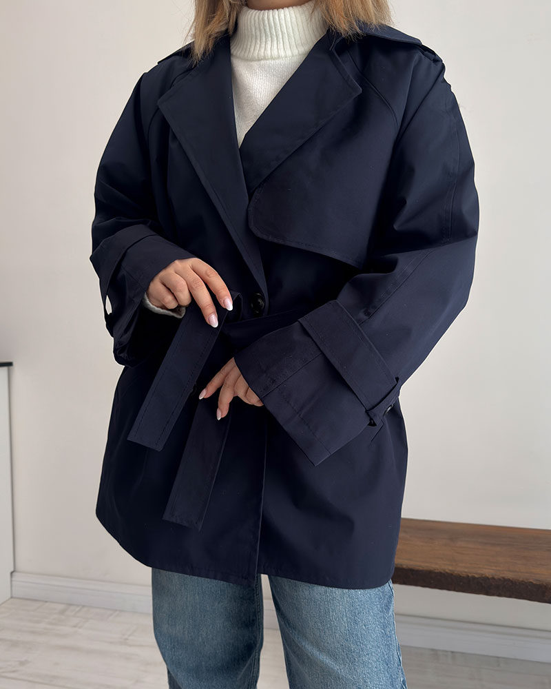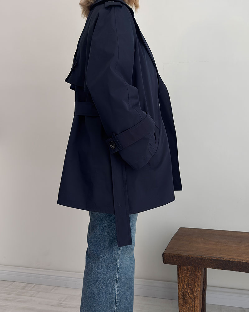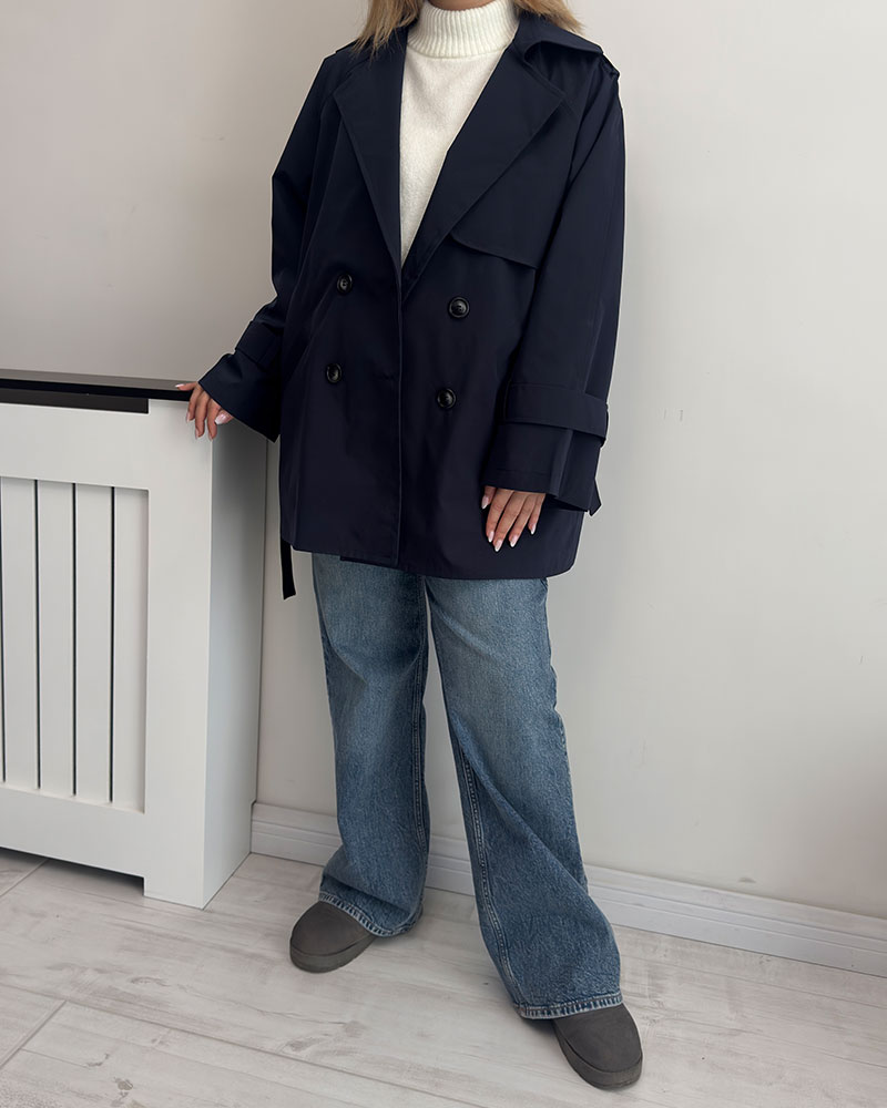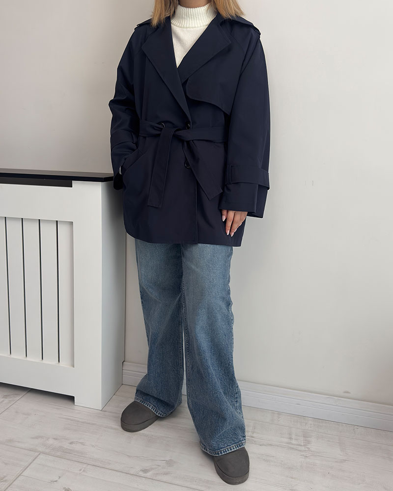 ترنچ کت Drop قد کوتاه (سرمه ای)