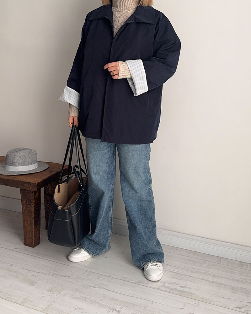 ترنچ کت Fly سرمه ای (قد کوتاه)