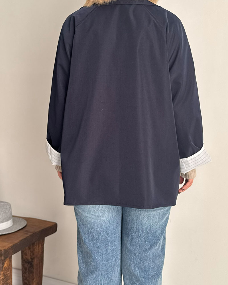 آستر تنه سرمه ای– آستر آستین ها سفید راه راه